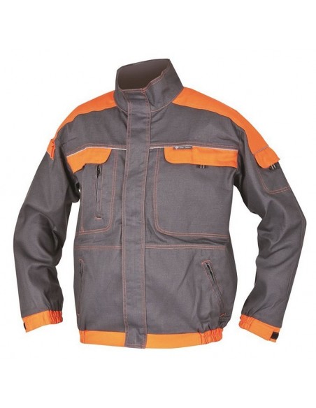Bluză de lucru, compoziţie material 100% bumbac cu o densitate de 260 g/m2. Închidere cu fermoar acoperit cu clapetă. Bluza dispune de manşete ajustabile, umeri în contrast, guler înalt, buzunare la piept cu velcro, buzunar pentru telefon mobil, douâ buzunare laterale cu fermoar, buzunar cu fermoar pe mânecâ stangâ, elemente reflectorizante și posibiliate logo în spatiul disponibil pe spatele bluzei.