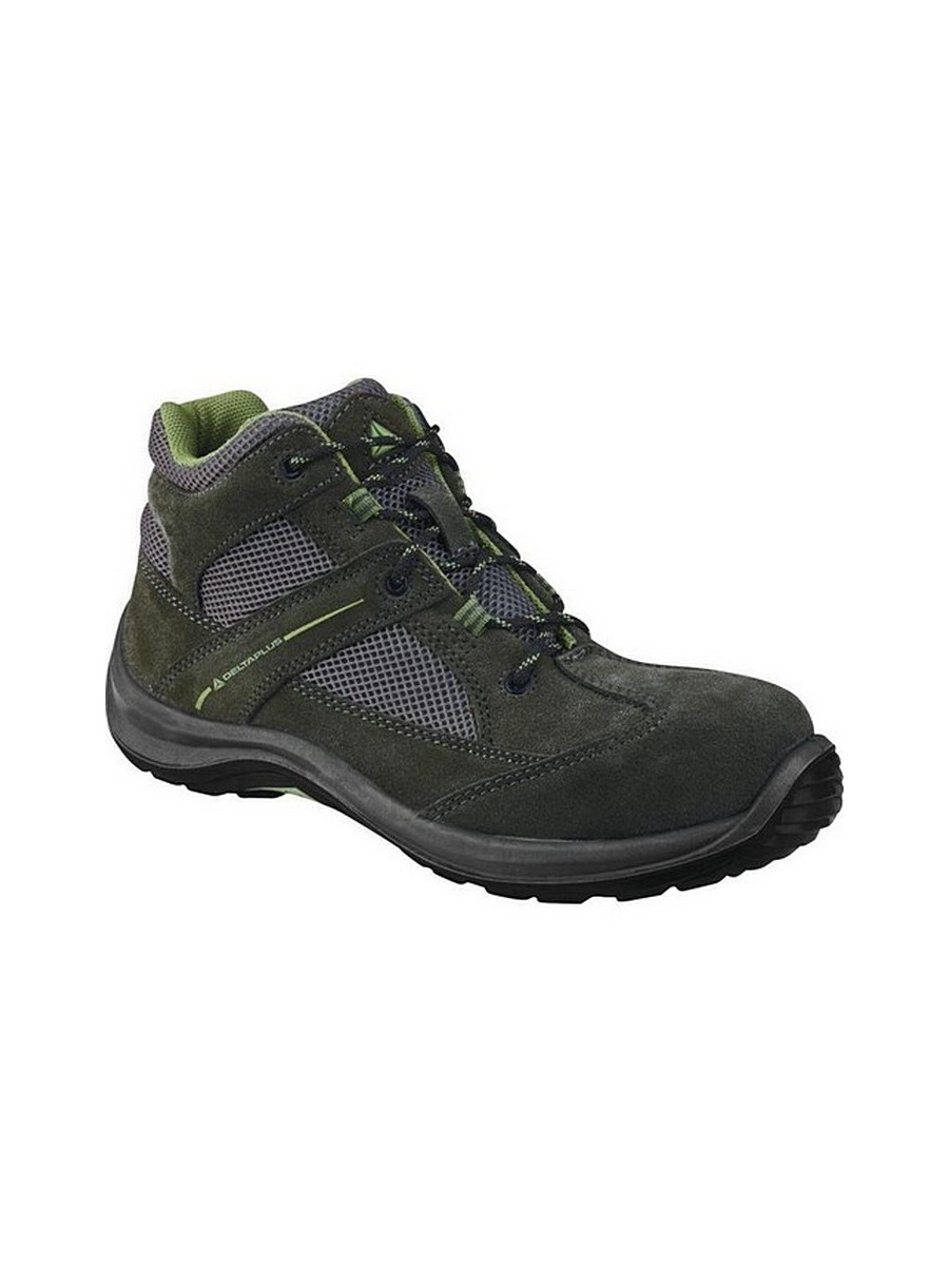 Bocanci de protecţie S1P, cu bombeu şi lamelă antiperforaţie din material compozit, feţe din şpalt de piele întoarsă şi polyester tip plasă, căptuşeală din poliester, talpă din poliuretan dublă densitate rezistentă la: uleiuri, grăsimi, hidrocarburi, antiderapantă, antistatică, SRC, conformi cu norma europeană EN 20345-1/2011.