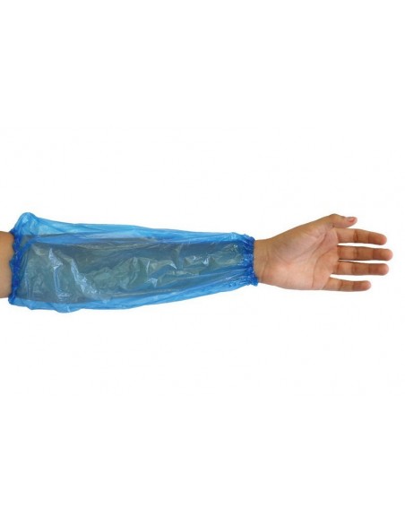Acoperitori mâneci de unică folosință din PE ECO din gama Hygonorm, fixare cu elastic la ambele capete, rezistență la apă, grosime aprox. 20 de microni, 40 cm lungime, ambalare în pungi de 100 de bucăți. Culori: alb/albastru.