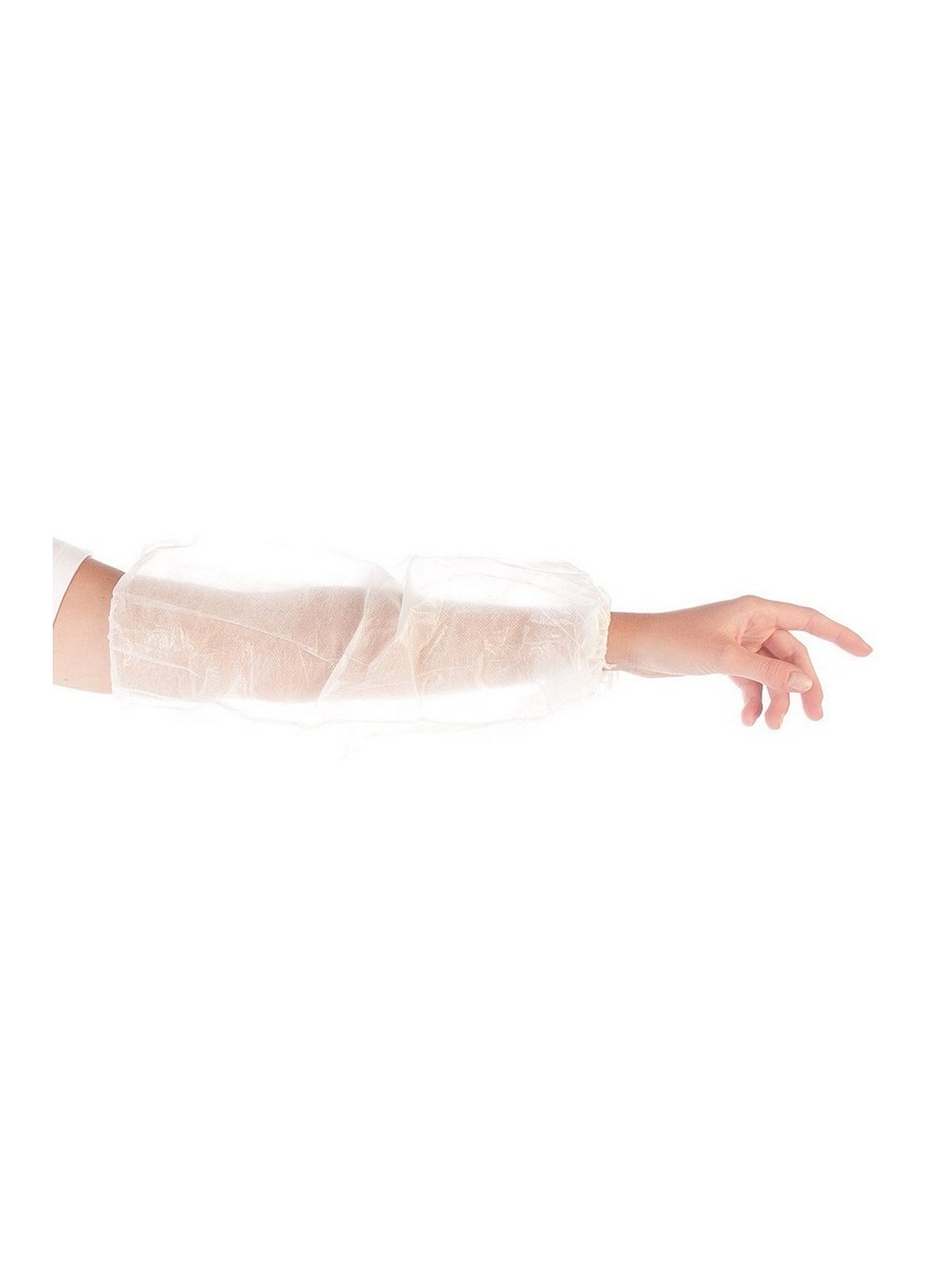 Acoperitori mâneci de unică folosință din PP cu strat superior din polietilenă din gama Hygostar, fixare cu elastic la ambele capete, 30g/m², 45 cm lungime, ambalare în pungi de 100 de bucăți. Culori: alb.
