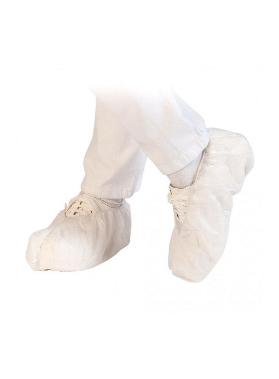 Botoșei de unică folosință din polipropilenă nețesută din gama Hygostar, aprox. 40 g/m², 40 cm lungime, respirabili, talpă antialunecare, potriviți pentru spitale, ambalați în pungi de câte 100 de bucăți. Culoare: alb/albastru. Se regăsesc și în varianta de 44 cm lungime, culoarea albastră.