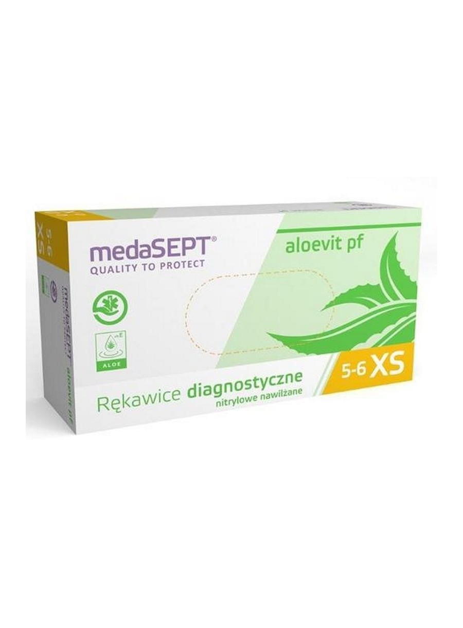Mănuși de protecție de unică folosință din nitril, nepudrate, ambalate 100 buc la cutie, culoare albastră, mărimi XS,S,M,L,XL. Material infuzat cu extras de aloe vera şi vitamina E. Rezistenţă la agenţi chimici vătămători.