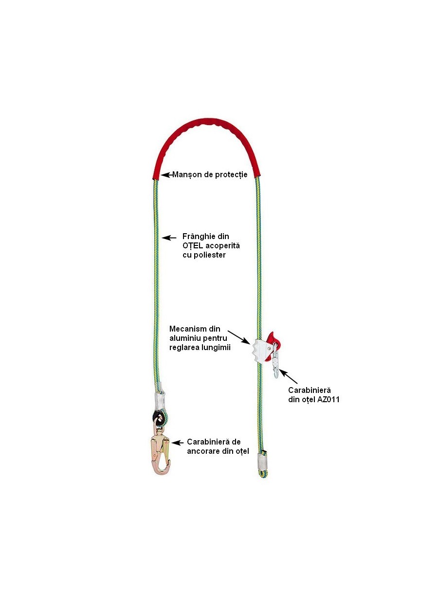 Frânghie de pozititionare din poliamidă, grosime 16 mm, cu ochet și carabinieră (cu deschidere 21 mm) la un capăt, cu manustop confecționat din aliaj ușor pentru reglajul diferitelor lungimi necesare în timpul lucrului. Celălat capăt este matisat pentru a evita destrămarea accidentală. Este prevăzută cu un tub textil protector împotriva uzurii premature și este concepută special pentru toaletari arbori. Poate avea lungimi de: 2 m, 3 m, 4 m, 5 m.