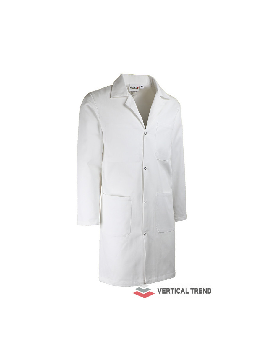 Halat de lucru, confecționat din bumbac 100%, 265 g/mp, 2 buzunare în talie, 1 buzunar la piept, închidere cu capse, culoare alb.