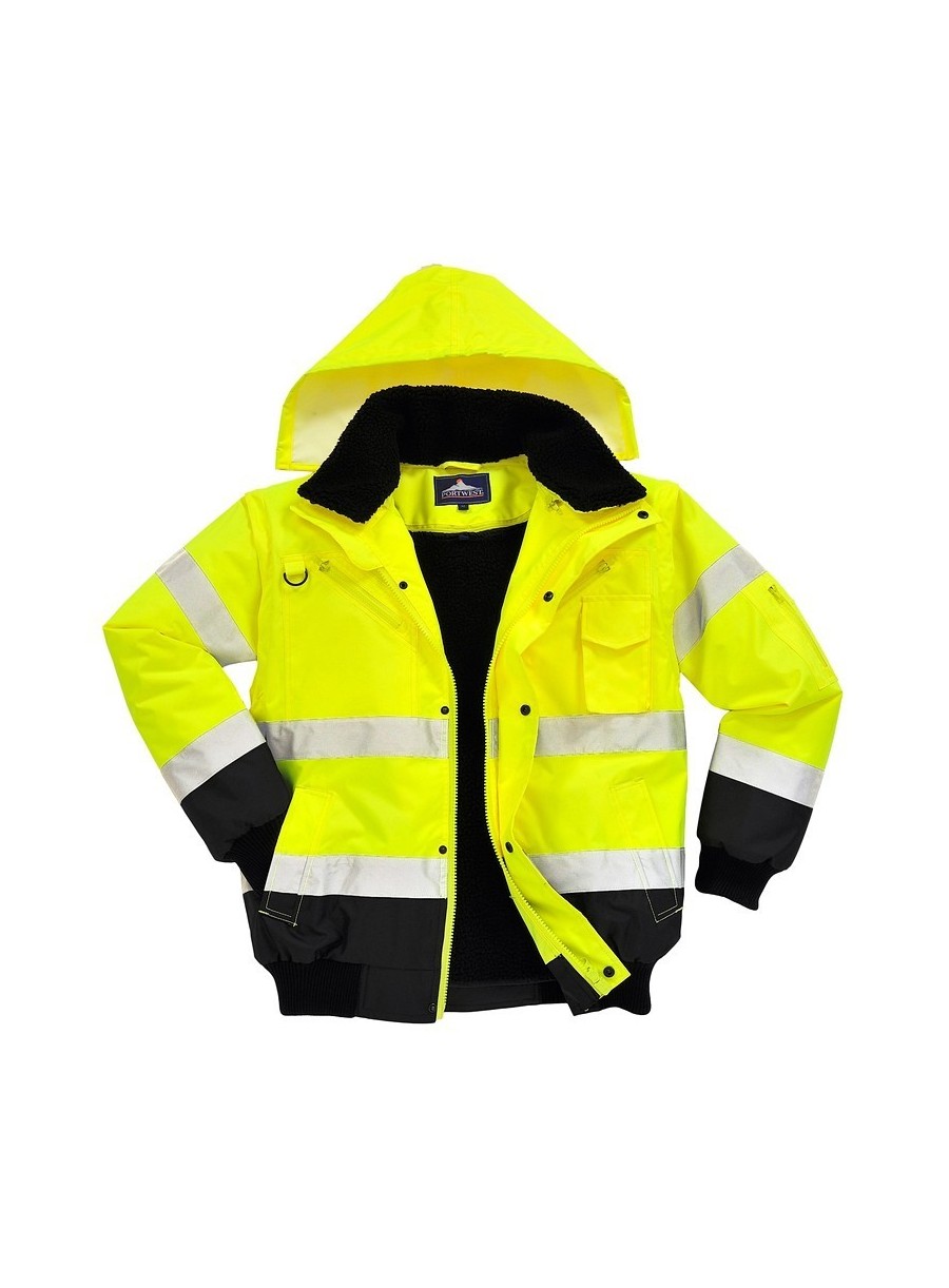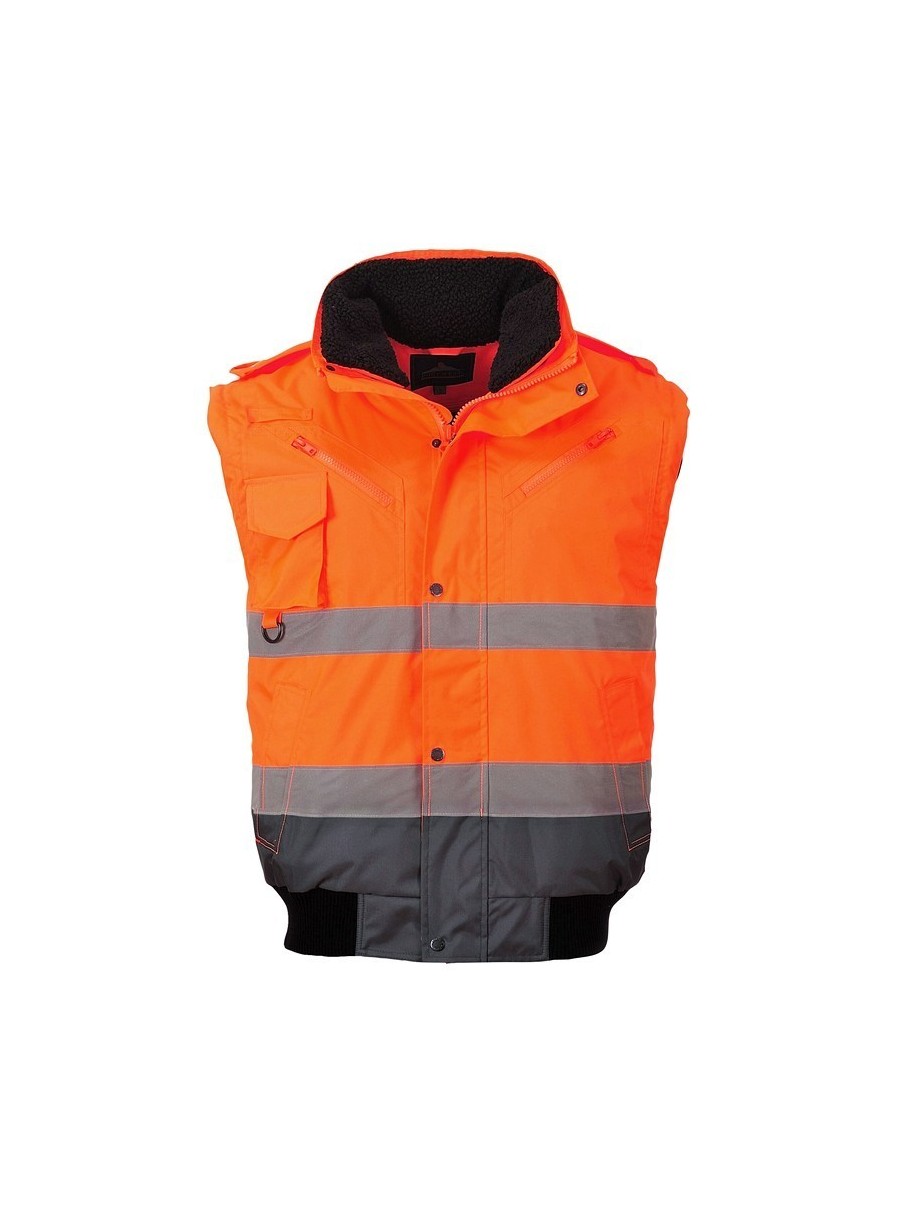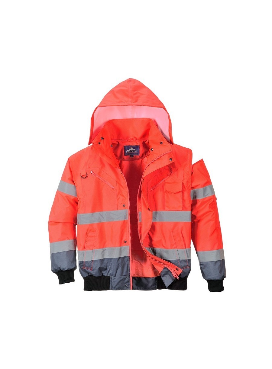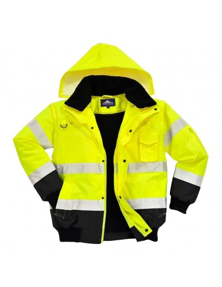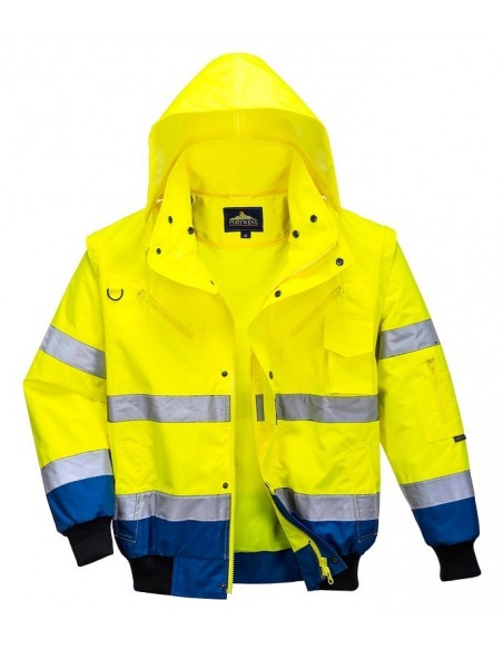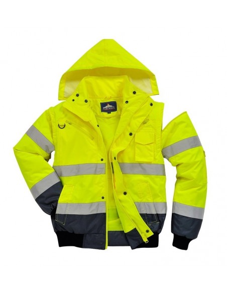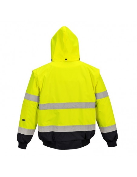 Jachetă 3 în 1 înaltă vizibilitate, confecționată din 100% poliester, fibră Oxford 300D, strat superior din poliuretan, rezistent la pete, 190 g/m², căptușeală 100% poliester, glugă detașabilă pentru funcționalitate sporită, 8 buzunare, mânecile detașabile, căptușeala si gulerul de blană oferă multiple opțiuni de folosire, mâneci și tiv tricotate, fermoar dublu pentru funcționalitate sporită, finisaj extrem de rezistent la apă, respinge apa de la suprafața materialului, guler de blană detașabil.