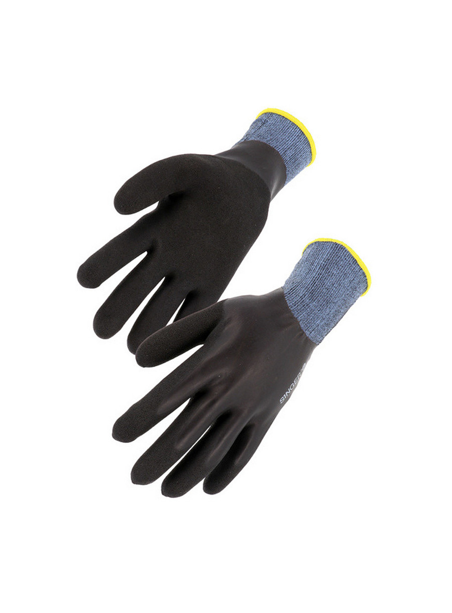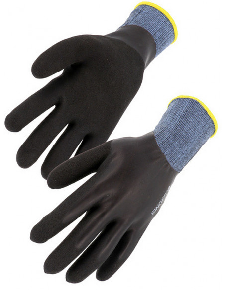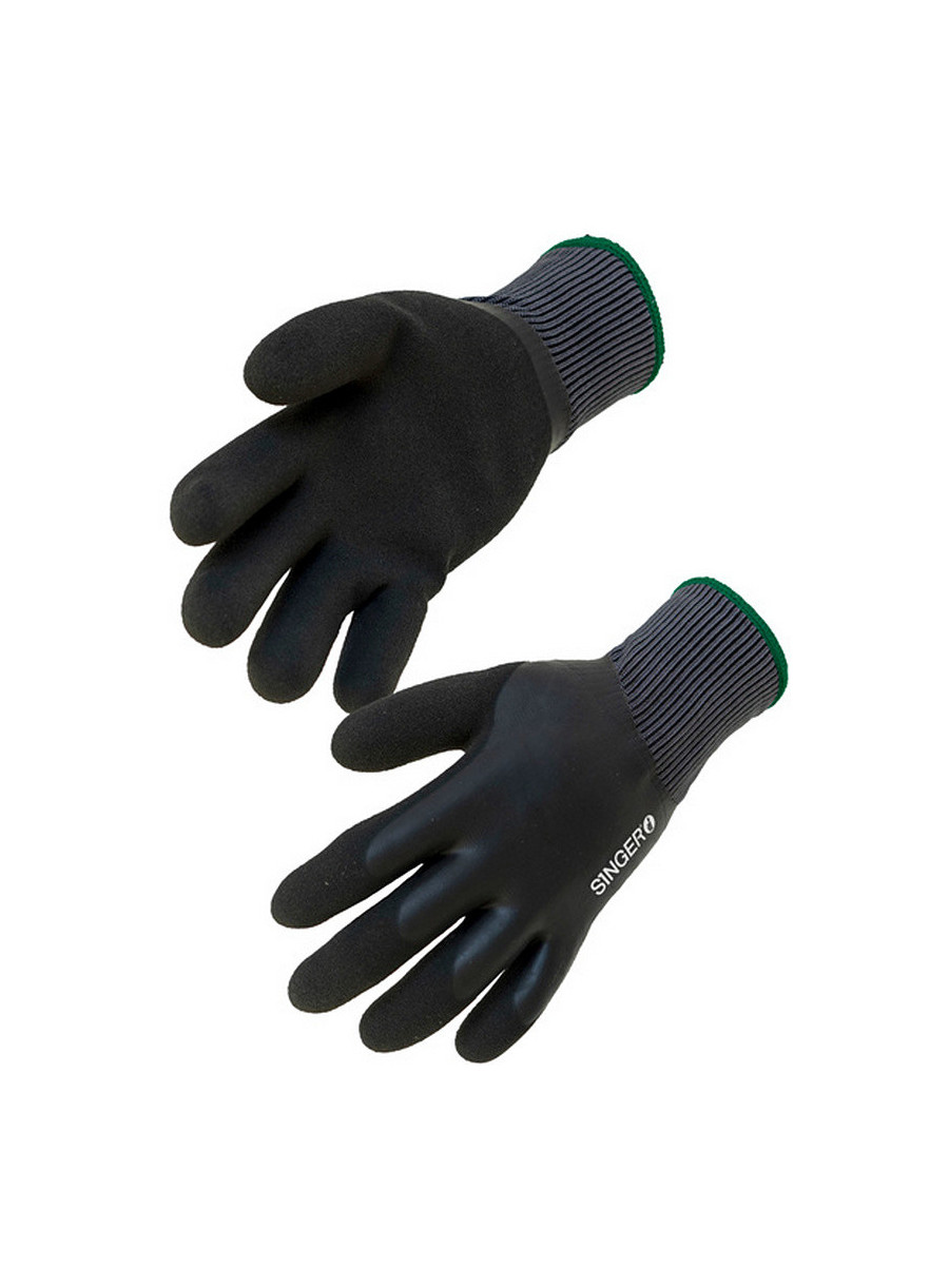 Manușă imersată complet în latex cu captușeală din nailon. Acoperire dubla de latex în palmă: primul strat din latex cu finisaj plat iar cel de-al 2-lea cu latex cu finisaj nisipos. Manșetă tricotată elastică.