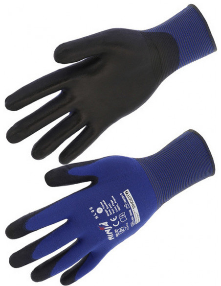Mănuși poliamida imersate în poliuretan. Spatele deschis pentru respirabilitate. Manșetă elastică.