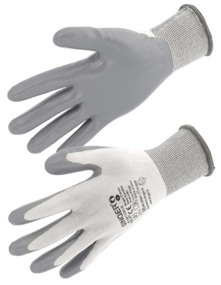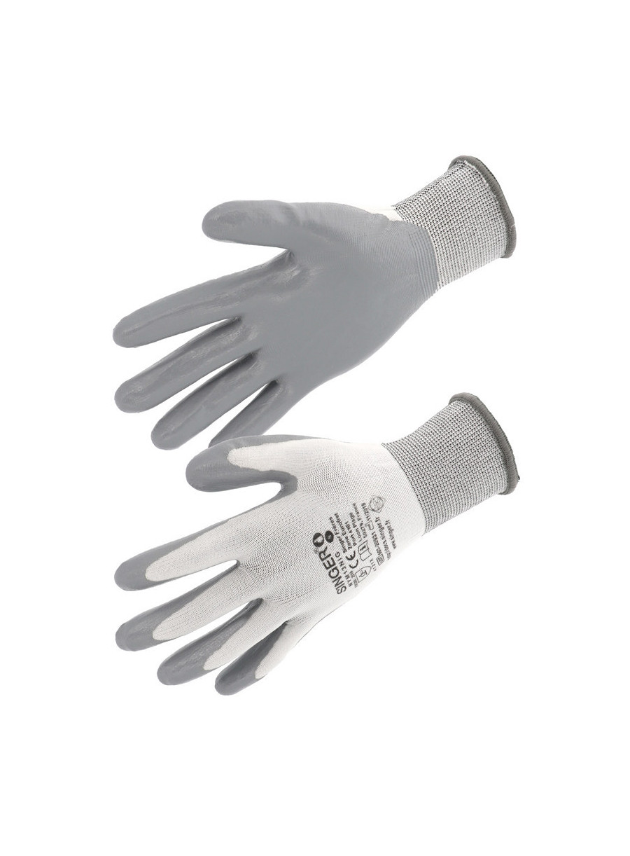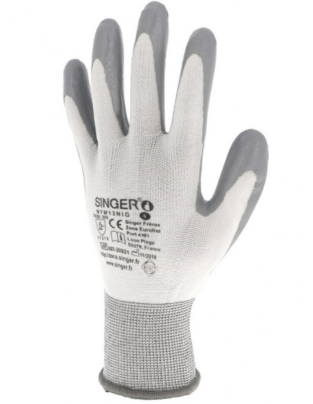 nitril în palmă și pe articulatii fără cusaturi. Palmă texturata moale și spatele deschis pentru respirabilitate. Manșetă