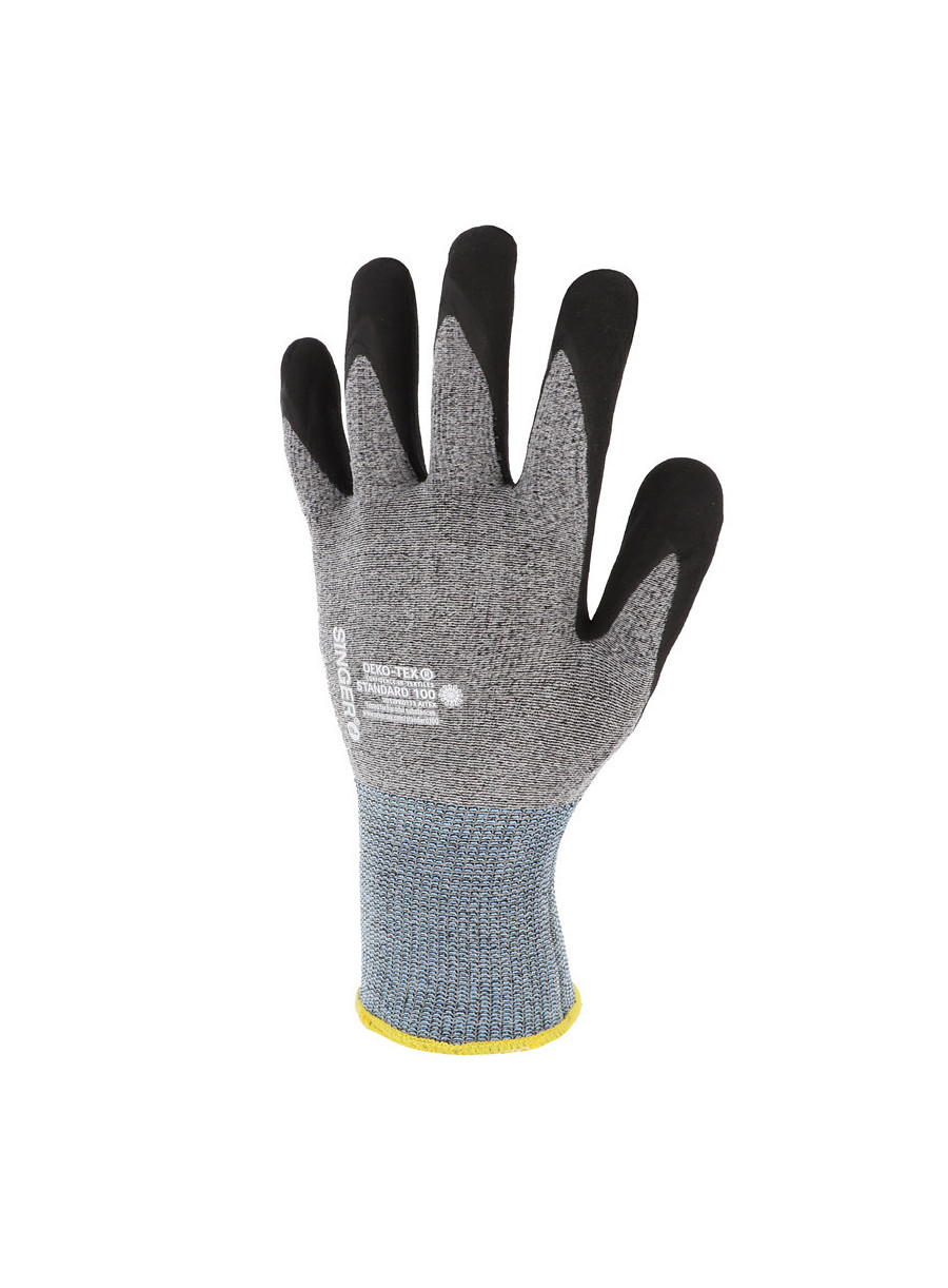 Manușă imersată în spumă de nitril, finisaj anti-alunecare în palmă, fără cusaturi și captușeală din poliamida cu elastan. Spatele mănușii deschis pentru respirabilitate. Manșetă tricotată elastică