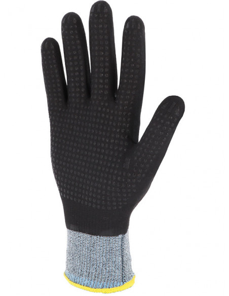 Invelisul anti alunecare cu puncte de nitril din palma ofera o buna aderenta la umezeala si in conditii de manipulare uscata sau umeda. Manseta tricotata elastică pentru o potrivire perfecta.