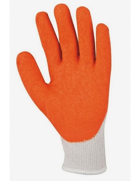 Mănuşi tricotate din bumbac/poliester imersate 3/4 în latex în palmă şi pe degete şi 1/2 din partea dorsală, dos aerisit, folosite în special pentru manipularea obiectelor alunecoase. EN 420, EN 388