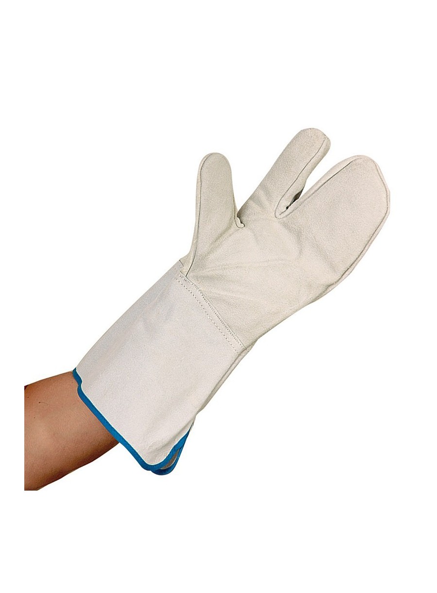 Mănuși anticalorice cu trei degete din gama Hygostar, din piele de bovină, cu manșetă de 15 cm, rezistente la temperaturi de până la 350° C, mărime universală, perfecte pentru manevrarea obiectelor fierbinți. Culoare: gri.