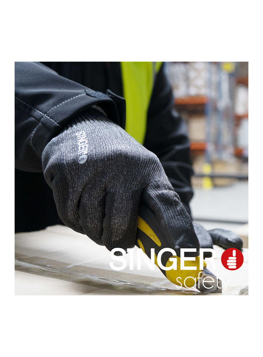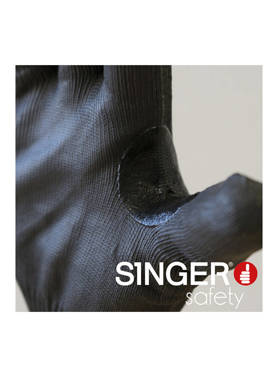 nitril în palmă şi pe degete, ce confera o aderenţă sporită şi simț tactil deosebit, întărite în zona degetului mare ceea ce le confera durabilitate.