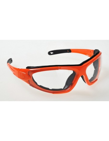 Ochelari de protecţie cu lentile din policarbonat transparente sau fumurii, cu protecţie suplimentară împotriva pătrunderii accidentale a particulelor sau prafului în zona ochilor datorită garniturii din poliuretan din jurul ramei detaşabile, cu braţe moi din cauciuc, trataţi anti-zgâriere şi anti-aburire.