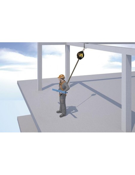 Dispozitiv de lucru la înălțime cu rapel automatic, cu chingă din poliester cu diametrul de 25 mm, carcasă ABS. Este prevăzută cu articulație pivotantă cu indicator de cădere și carabinieră ovală. Lungimea chingii de poliester este de 6 m. Greutate: 1,6 Kg.