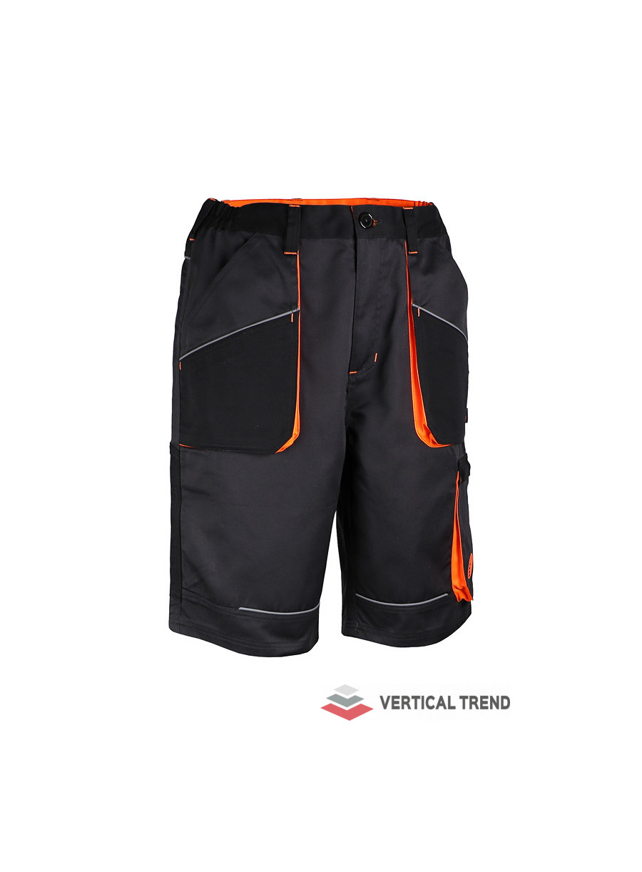 Pantaloni scurți de lucru, confecționați din 65% poliester / 35% bumbac, 245 g / mp, culoare: gri antracit / negru / portocaliu, talie elastică,