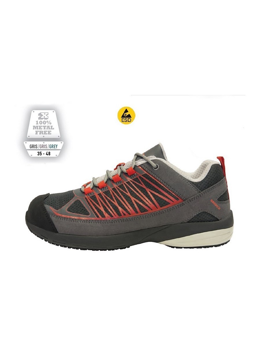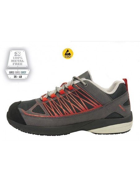 Pantofi de protecție S3, cu bombeu din material compozit cu ranforsare exterioară și lamelă anti-perforație flexibilă. Fețe din material textil și microfibră hidrofobizată. Talpă exterioară din cauciuc + PHYLON cu un profil dedicat ORIOCX 2D PRO, cu unul dintre cele mai mici coeficienți anti alunecare. Sistem de amortizare și anti-torsiune în talpă. ESD și 100% METAL FREE.